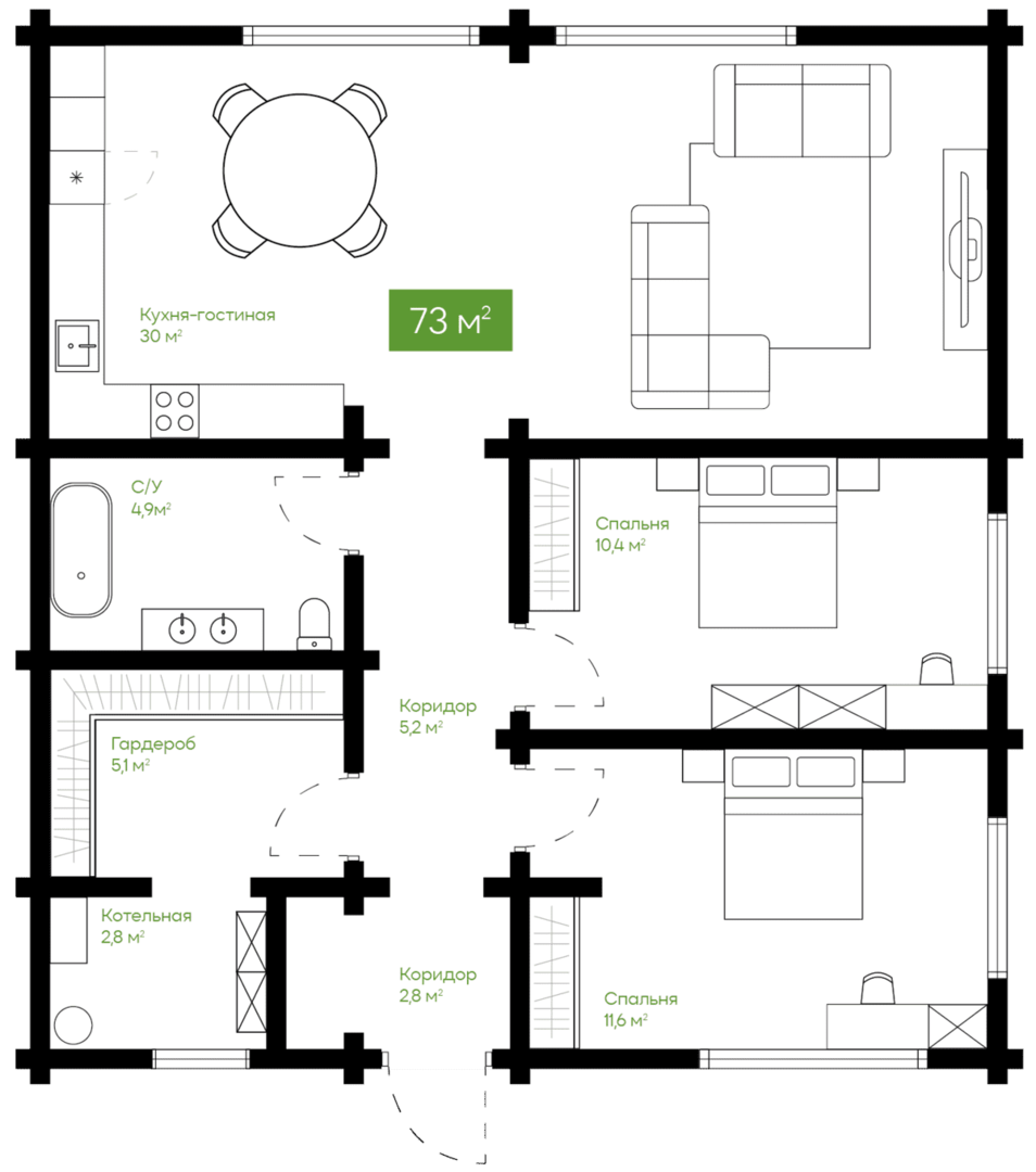 Проект коттеджа Дом из бруса 73 в КП Сердце Сибири