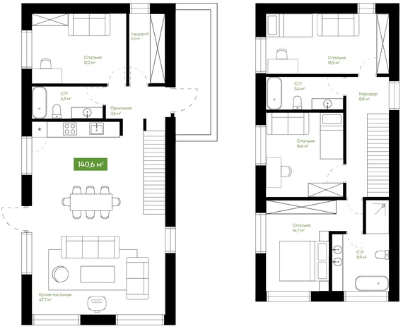 У каждого члена семьи есть отдельная комната, где в любое время дня можно свободно отдыхать или работать.