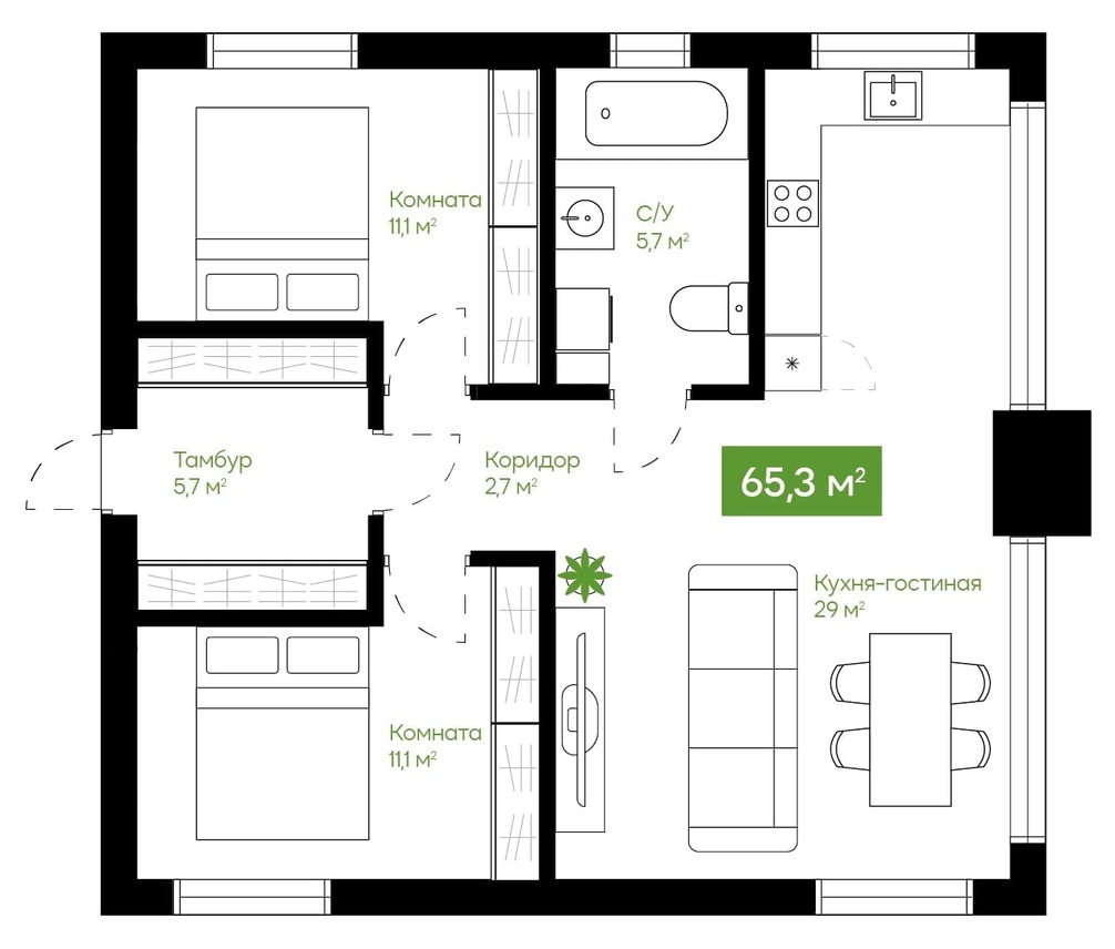65.3 м²